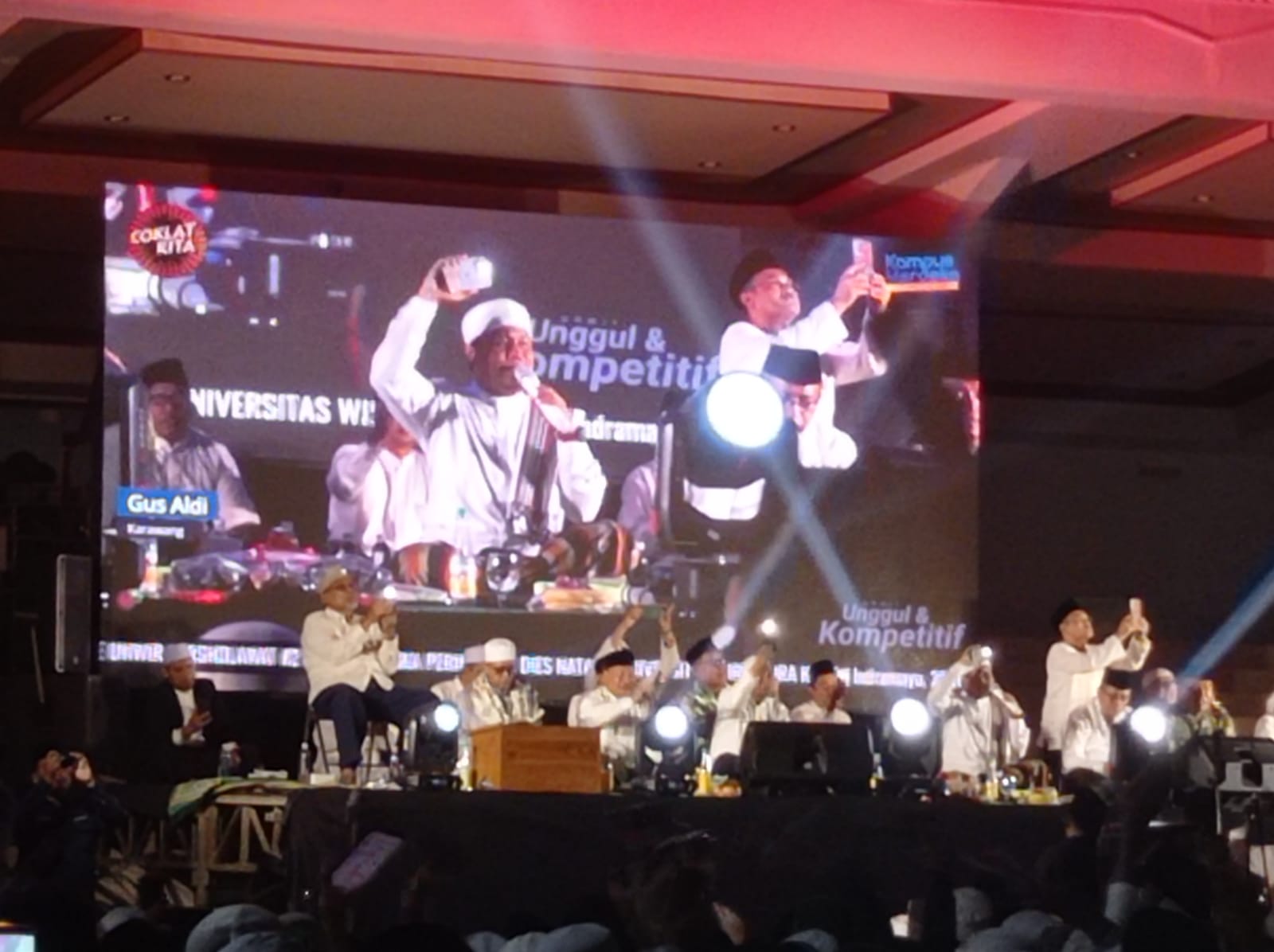 Halaman Aula Nyi Endang Dharma Ayu dipadati jamaah UNWIR BERSHOLAWAT 2. Rektor Universitas Wiralodra Dr. H. Ujang Suratno, S.H., M.Si. dalam sambutan mengucapkan terima kasih kepada seluruh undangan dan juga jamaah yang hadir pada kegiatan UNWIR BERSHOLAWAT. Rektor menyampaikan Insya Allah UNWIR BERSHOLAWAT akan menjadi agenda tahunan kami dalam agenda Dies Natalis dan semoga semua yang hadir dalam kegiatan ini mendapatkan barokah baik bagi Universitas Wiralodra ataupun bagi masyarakat yang hadir.
